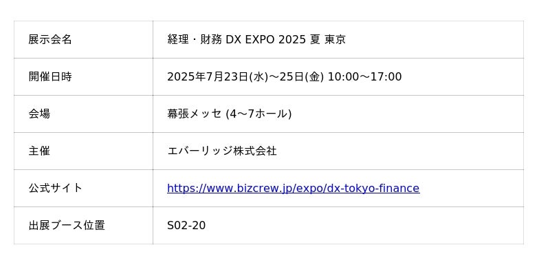 【出展情報】株式会社BPIO、国内最大級のDX実現のための総合展「経理・財務DX EXPO 2025 夏 東京」に出展