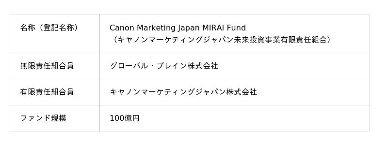 ■Canon Marketing Japan MIRAI Fund概要