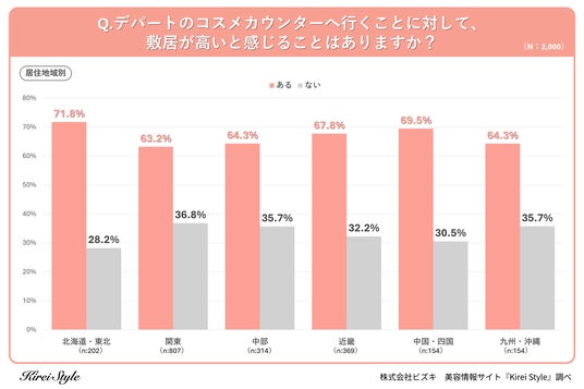 デパートのコスメカウンターに敷居の高さを感じる?「北海道・東北」では最多