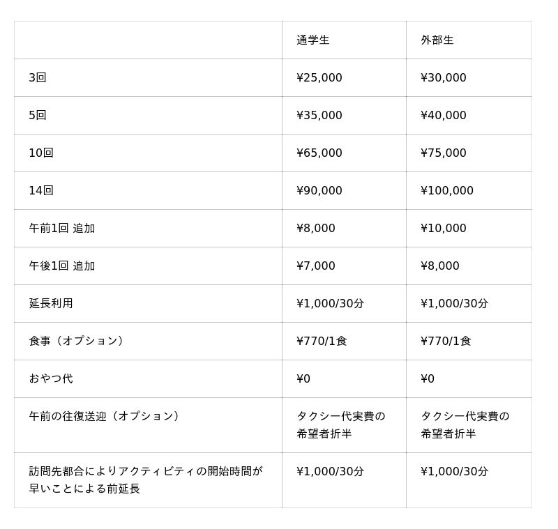 ・ご送迎をご希望の場合、当日の参加者で最短コースを定め校舎からタクシーでスタッフが乗車し、希望者でタクシー代金の実費を折半いただきます。