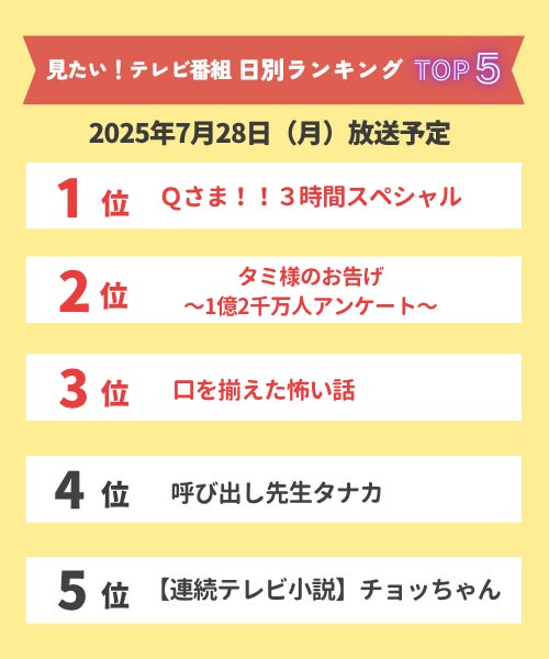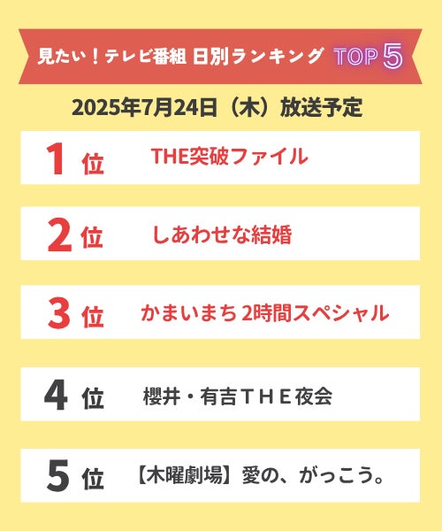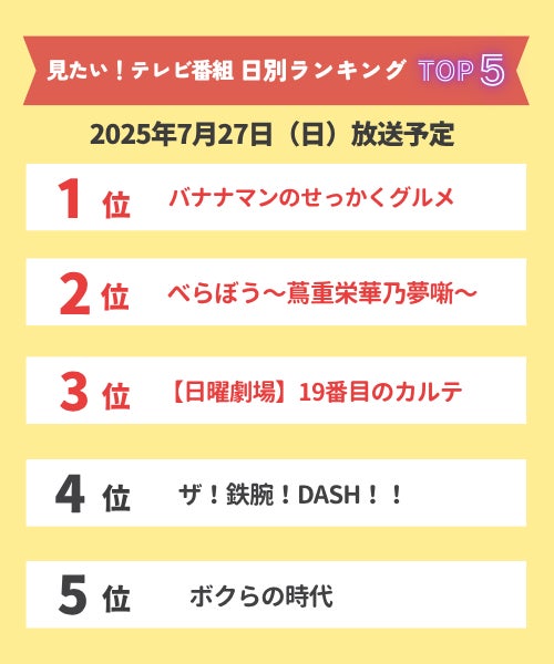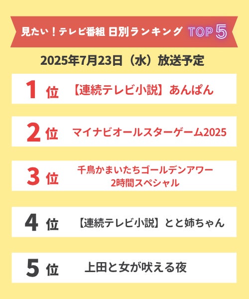 【今週見たい!番組ランキング】2025年7月23日(水)~7月28日(月)放送予定