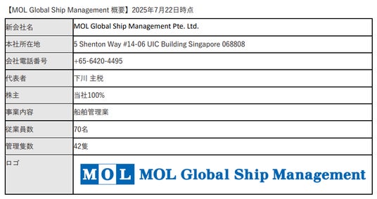 株式会社商船三井(社長:橋本 剛、本社:東京都港区、以下「当社」)は、当社グループの船舶管理機能の集約と安 全管理強化を目的に、2025年7月22日付で当社100%出資のLNG船舶管理会社(註1)の名称を MOL Global Ship Management Pte. Ltd.(読み:エムオーエル グローバル シップ マネージメント、以下「MOLGSM」)に変更い たしました。今後MOLGSMは、LNG船に加え、当社グループが長年にわたり培ってきた乾貨船およびタンカーを含め た計200隻以上の船舶管理を担う予定です。