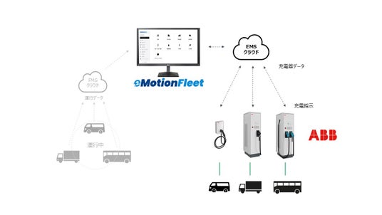 ABBの急速・普通充電器とeMotion Fleetのエネルギー管理システムが連携