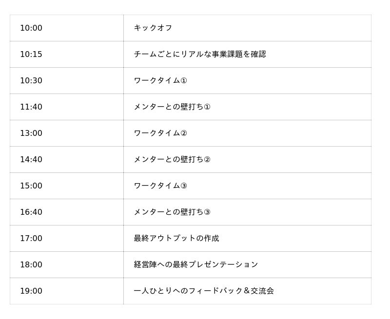 参加者に伴走するのは、外部の講師や先生ではありません。戦略コンサルティングファームの第一線で実績を積み、自ら事業を立ち上げた現役経営者2名が、一日中参加学生に伴走します。