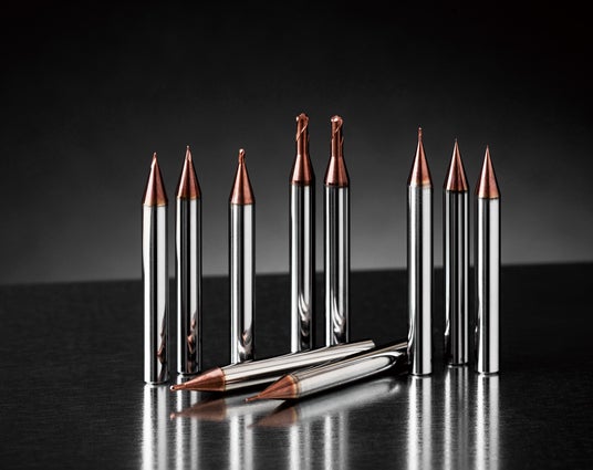 本商品は、新開発した超々微粒超硬素材を採用しています。次世代添加元素を加えることで、従来の超硬を超える耐摩耗性(硬さ)と耐欠損性(靭性)の両立に成功しました。また、この新素材に最適化した刃形設計により、高硬度鋼の長寿命かつ高精度な加工を実現します。
