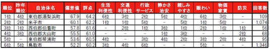 ○東伯郡湯梨浜町が昨年4位から順位を上げて1位
