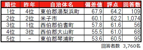※昨年の順位が「-」となっている自治体は、昨年のランキングでは偏差値50未満だったため公表していません。
