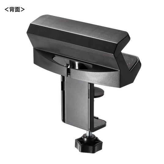 デスクを挟んでネジ部分を回すだけの簡単設置です。デスクに取り付けるクランプは、10~60mmまでの幅広い天板サイズに対応しています。