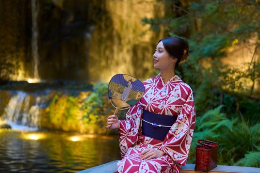 【内容】お食事(ランチ・アフタヌーンティー・ディナーよりお選びいただけます) / 浴衣一式(浴衣、半幅帯、下駄、カゴバッグもしくは巾着バッグ、帯板、伊達締め、腰紐2本 ※女性用の場合)/ 着付 / オリジナル団扇 / 企画展50%割引優待券