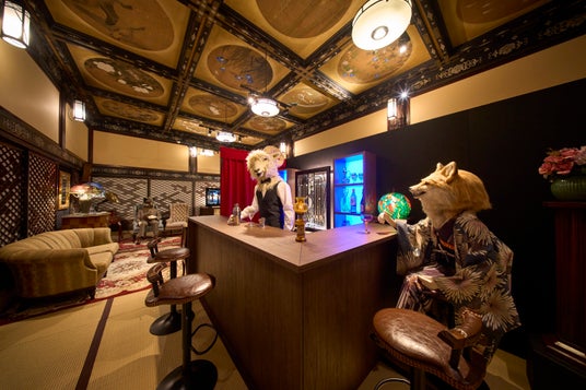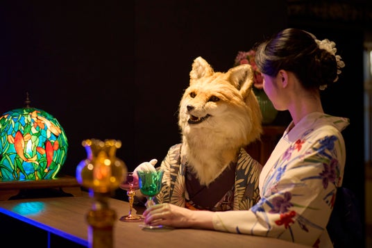 古来より多くの人たちとは異なる者を「鬼」と称してきました。十畝の間に広がるのは、日常の世界から迷い込んだ、鬼の世界です。妖美なステンドグラスのあかりが灯るレトロな空間に溶け込み、狐、羊、猪など、人の容姿と異なる鬼とのひとときをお愉しみください。