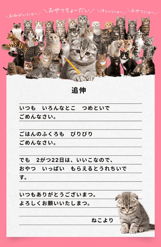 - キャンペーン名:愛猫の「おやつ」がもらえる猫の日きゃんぺーん