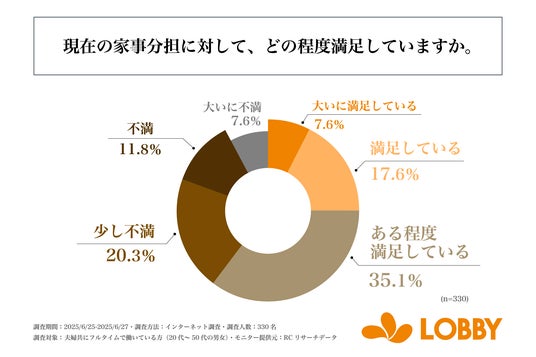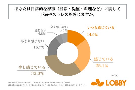 共働き世帯の20代~50代男女の7割以上が、日常的な家事に関して不満やストレスを感じている!株式会社ロビーが「共働き世帯の“家事の実情”に関する調査」を実施!