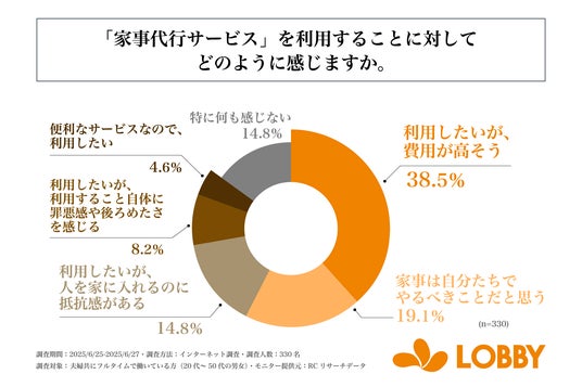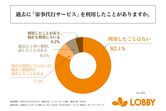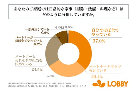 株式会社ロビー(本社:東京都新宿区、代表取締役:対馬 誉仁)が運営する「LOBBY」は、夫婦共にフルタイムで働いている20代~50代の男女を対象に「家事の実情」に関する調査を実施しました。この調査から、共働き世帯の家事に対する負担感やパートナー間の家事分担状況、家事代行サービスの利用実態などが明らかになりました。