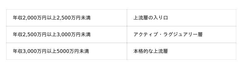 ●年収2,000万円以上2,500万円未満は“上流層の入り口”。