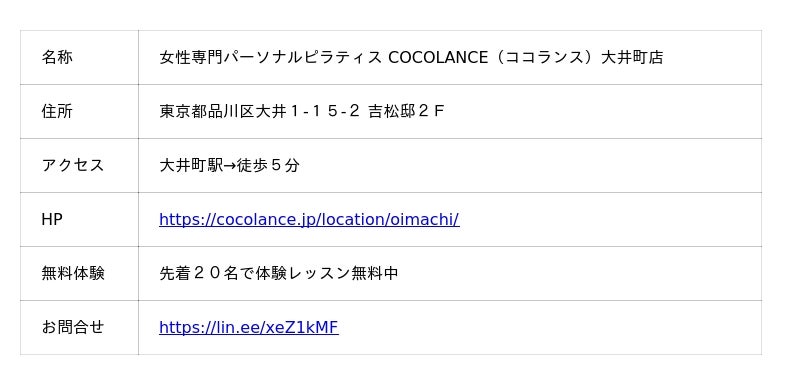 【大井町駅 徒歩5分】女性専門パーソナルピラティス COCOLANCE(ココランス)大井町店が2025年9月1日にオープン