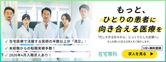 『在宅専科』は、在宅医療の分野でキャリアを築きたい医師のための完全無料の転職支援サービスです。>>詳細はこちら