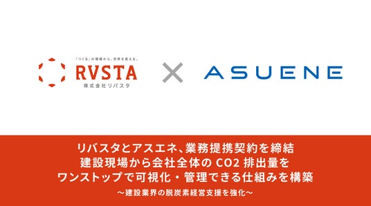 株式会社リバスタ(本社:東京都江東区、代表取締役:高橋巧、以下 当社)とアスエネ株式会社(本社:東京都港区、代表取締役CEO:西和田浩平、以下 アスエネ)は、建設業界の脱炭素経営支援を強化するため、業務提携契約を締結したことをお知らせします。