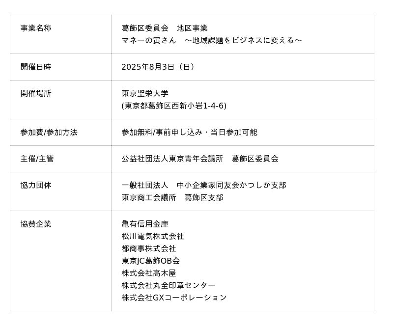 本企画では、地元葛飾で活躍する経営者による講義や、起業に必要な考え方のインプットに加え、グループワーク形式でビジネスアイデアを具体化していきます。