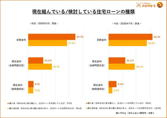 購入者・検討者ともに前回(25年1月)調査よりも「固定金利」が増加