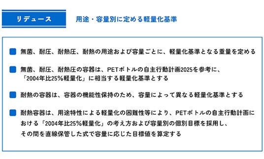 要求事項2・年間ベースのボトル平均重量が、用途・容量別に定める軽量化基準を満たすこと