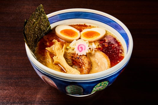 「こいくち煮干」と同様の濃厚な煮干スープをベースに、「赤唐辛子一升漬け」「じゃこ辛」「煮干麻辣ナッツ」「ナンバ味噌」といった4種の異なる辛味素材をブレンド。一口啜れば辛さだけでなく、風味・香り・奥行きのある旨味が全体に広がる。青森の伝統を受け継ぎながら、刺激的な味わいで進化させた、東京駅でしか味わえない一杯。