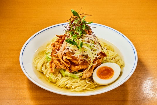コチュジャンや韓国唐辛子を効かせた自家製の旨辛ダレで和えた、豚の冷しゃぶ肉を、すっきりとした冷麺仕立てのラーメンの上にたっぷりとトッピング。スープ自体には辛味を加えていないため、辛さが苦手な方でも美味しくいただけます。さらにお好みで、黒酢や柑橘などを独自調合した特製香酢をかけることで、さっぱりとした味わいとともにクエン酸が効いて、夏バテ対策にも嬉しい一杯です。