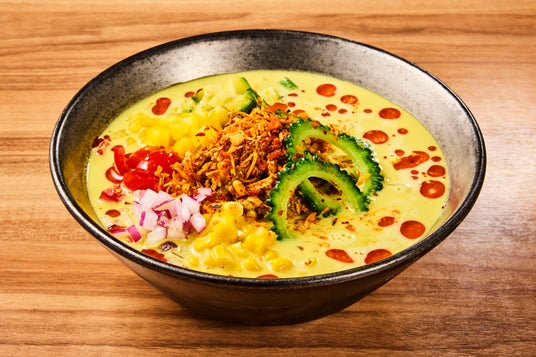 豆乳とスパイス香る旨みたっぷりのキーマカレーが冷たい麺に絡む、ひんやりとしながらもピリリと辛い一杯。たっぷりの彩り豊かな夏野菜とサクサクとしたフライドエシャロットの食感がアクセントです。夏の食欲を刺激する、爽快感あふれるスパイシーな冷やしラーメン。キーマカレーを少しずつ溶かしながら食べるのがおすすめです。