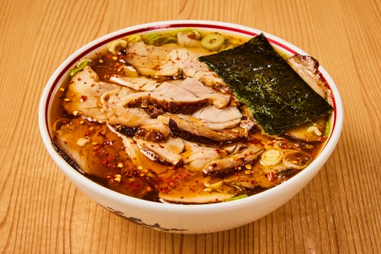 日本では珍しい四川唐辛子をはじめとする数種類の唐辛子と、香辛料を絶妙なバランスで配合した自家製の香り高い辣油を、旨みたっぷりの煮干スープに合わせました。また、特製ダレで仕上げた食べごたえのあるチャーシューをたっぷりとトッピング。食べ進めていくと、スープの油に辛味がなじみ、辛さがより引き立ちます。辛さの中に旨みが広がるクセになる一杯を、ぜひご賞味ください。
