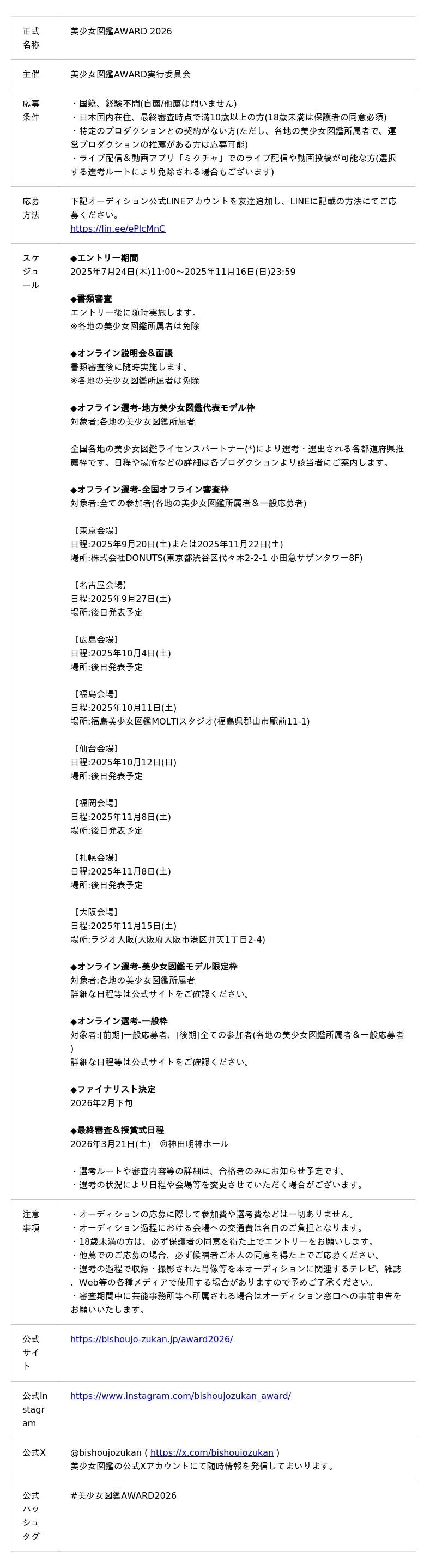 公式サイト: https://bishoujo-zukan.jp/award2026/