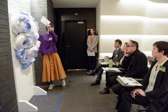 最終審査では、各作品をマンションのエントランスに仮設置したうえで、制作者がプレゼンテーションを実施。美術館館長や大学教授、アートコーディネーター、ギャラリスト、彫刻家、建築家など多彩な分野から選ばれた審査員による審議のもと、最優秀賞を決定します。
