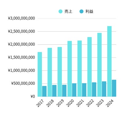 2024年度の売上は前年を上回り、通期で23年連続の増収増益を記録。