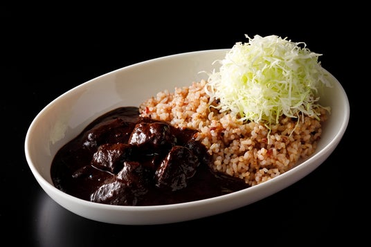 カツ×カレーは理想の組み合わせ。『ポークカツカレー』は、サクっとジューシーな厚みある豚カツにホテル伝統のカレーを昇華させた“漆黒”カレー『銀座カレー』をあわせた逸品。ライスは白米または、オリジナル八穀米「Jシリアル」よりお選びいただけます。