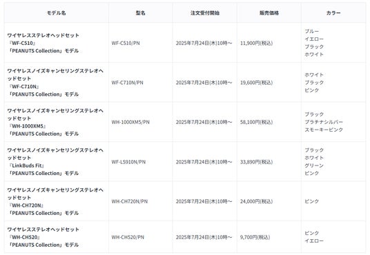 ※『WF-C510』『WF-C710N』『WH-1000XM5』『WH-CH720N』『WH-CH520』は2025年8月1日(金)以降、『LinkBuds Fit』は9月上旬以降、順次出荷開始予定です。