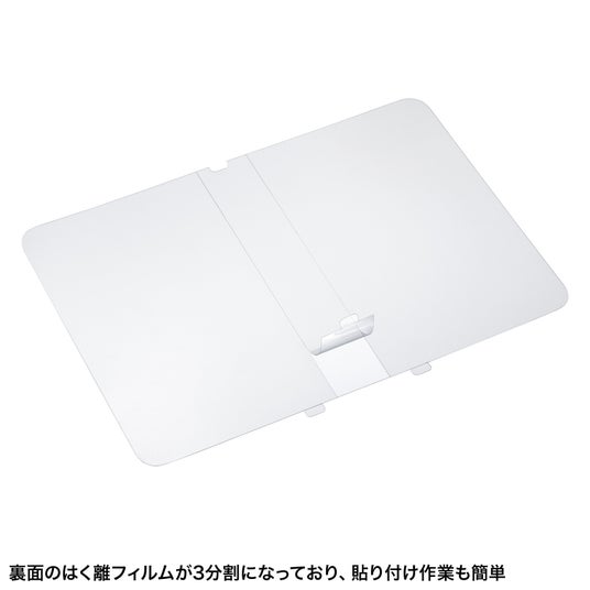 また、裏面のはく離フィルムが3分割になっているため、貼り付け作業も簡単に行えます。