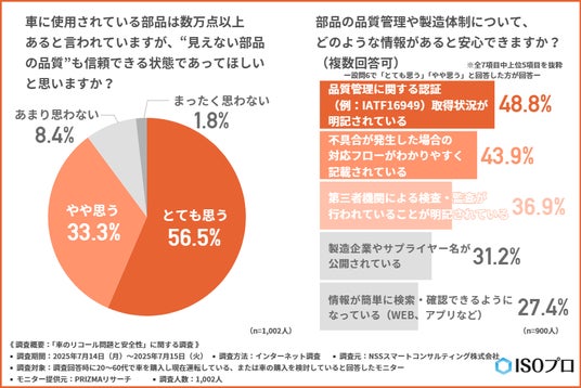 約8割が車の部品・製造について品質認証があると安心できると回答