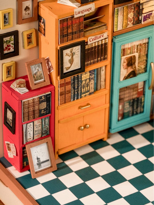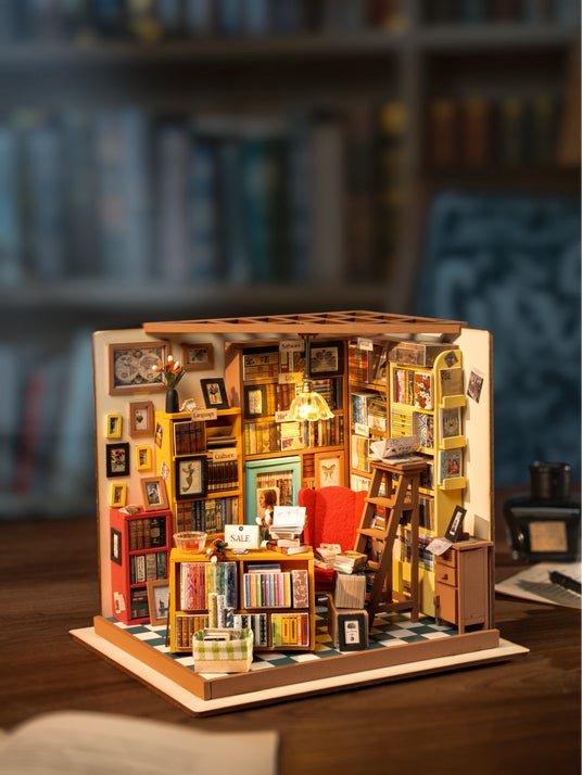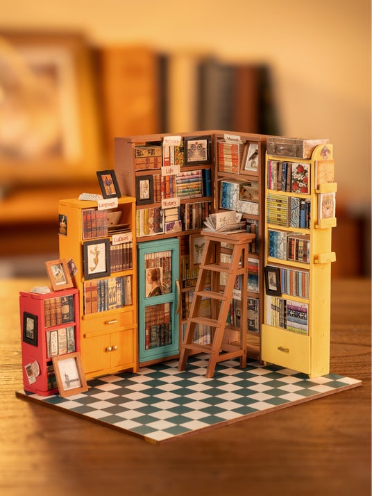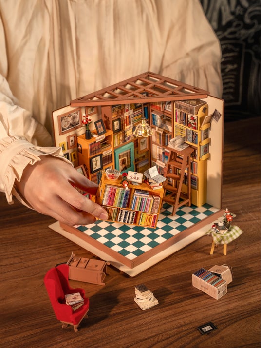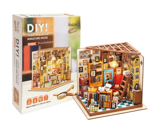 「つくるんです(R)」シリーズの中でも人気の高い、書店をモチーフにしたミニチュアハウスがこの夏、新たに登場します。本棚にびっしりと並んだ本のボリューム感、壁に飾られたフォトフレーム、曲線が可愛らしい吊り下げライトなど、細部までこだわったデザインが魅力。どこか懐かしさと温もりを感じる、個性的な小さな本屋さんをお楽しみいただけます。