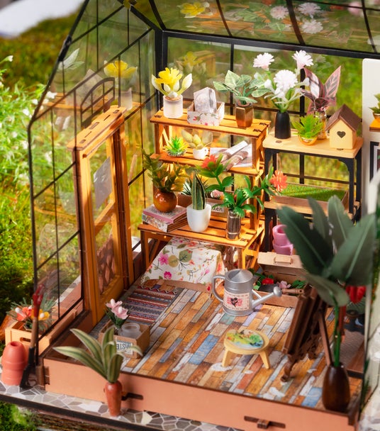 付属の壺やポットにたっぷりの植物を挿し込み、ガーデニングツールを自由にレイアウトすることで、自分だけの理想の温室空間をつくり上げることができます。細部までこだわって配置する時間も、完成後の眺めも、きっと特別なひとときになるはずです。