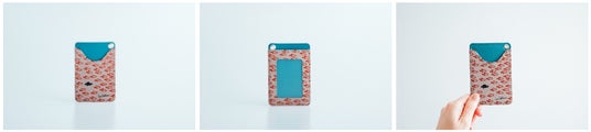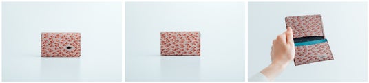 印伝を象徴する漆模様の小さな魚たちは、密度や位置をアイテムごとに変えています。漆ならではの光沢は、小さな魚たちへ艶やかな命を吹き込み、模様へ豊かな表情と生き生きとした力強さを与えています。