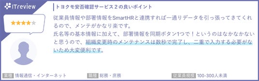 誰でも簡単に使えるビジネス向けのクラウドサービスを提供するトヨクモ株式会社(本社:東京都品川区 代表取締役社長:山本裕次、以下トヨクモ)は、国内最大級のIT製品・SaaSレビューサイト「ITreview」が発表する 「ITreview Grid Award 2025 Summer 安否確認システム部門」 において、法人向けの安否確認システム「安否確認サービス2」が21期連続で最高位の「Leader」を受賞したことをお知らせします。