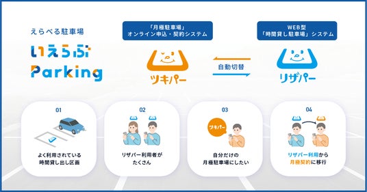 事業内容:駐車場契約管理業務代行サービスの企画・開発・運営、月極駐車場契約管理決済システム「ツキパー」、駐車場特化型ポータルサイト「いえらぶParking」、駐車場予約サービス「リザパー」