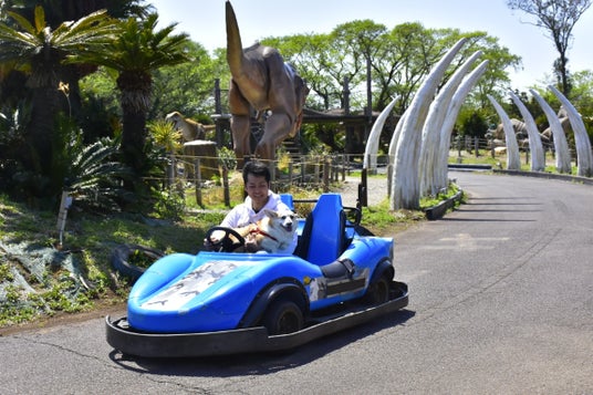 恐竜たちの間を駆け抜けるゴーカート「ディノエイジカート」は小・中型犬乗車OK!