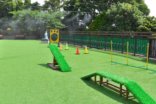 わんちゃん広場のアジリティを増設!水飲み場もあるので暑い日も安心。思い切り走って遊ぼう!