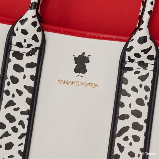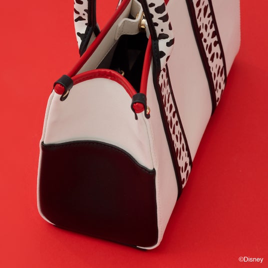 「クルエラ」のシルエットをフロントにプリントし、ハンドル部分はダルメシアン柄に。