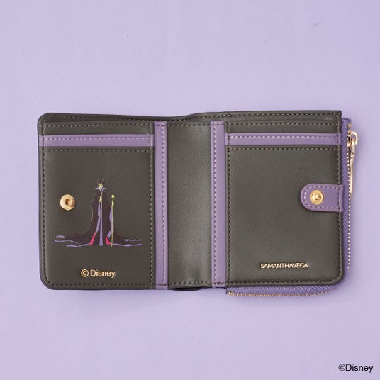 折財布の中には、「マレフィセント」のアートをプリントし、「マレフィセント」のマントをイメージしたダークグレーとパープルのバイカラーで