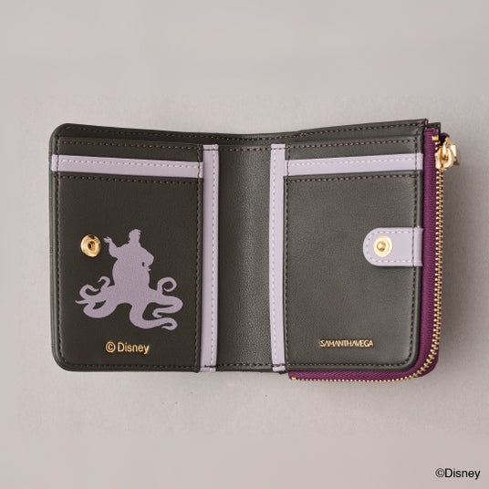 折財布の中に「アースラ」のシルエットをプリントし、「アースラ」を連想させるダークグレー×パープルのバイカラーで、細部にまで世界観を楽しんで頂けるデザイン。
