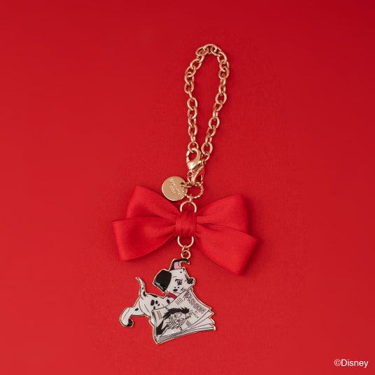 「クルエラ」のNEWS雑誌を咥えている子犬を金具に落とし込んだバッグチャーム。