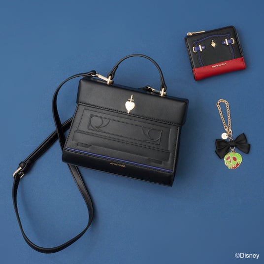 ディズニー映画『白雪姫』に出てくる「女王」をイメージしたハンドバッグ、折財布、バッグチャーム。