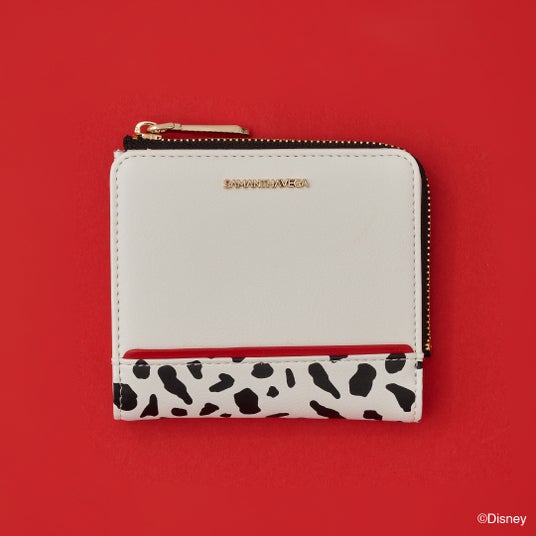折財布の中に「クルエラ」のアートをプリントし、細部にまで世界観を楽しんで頂けるデザイン。
