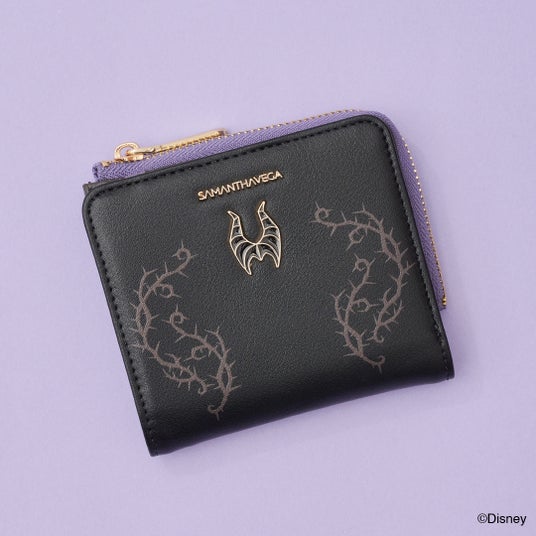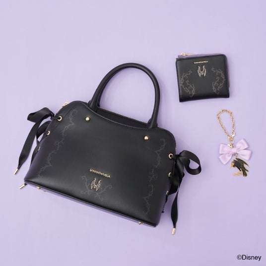『眠れる森の美女』 に登場する魔女「マレフィセント」をイメージしたハンドバッグ、折財布、バッグチャーム。