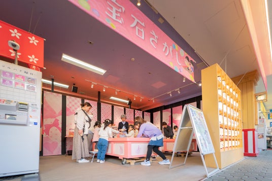 【宝石さがし】はスコップを使って、砂の中に隠された宝石を探すゲームです。期間中は宝石とともにハロハロの日スペシャルアイテムとして「ハロハロアクリルキーホルダー」が手に入る鍵が隠れています。体験時間内の5分間で探し出そう!【期間】2025年8月1日(金)~7日(木)